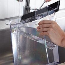 - Easy-fill, removable water and milk reservoirs.