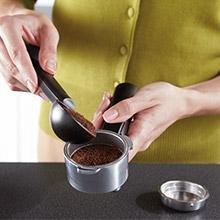 3. Remove and wash the water reservoir, milk reservoir, porta-filter, 2 filters and measuring scoop in a mixture of mild detergent and water. Rinse each thoroughly and place back onto appliance. Note: porta-filter and water reservoir are not dishwasher safe.